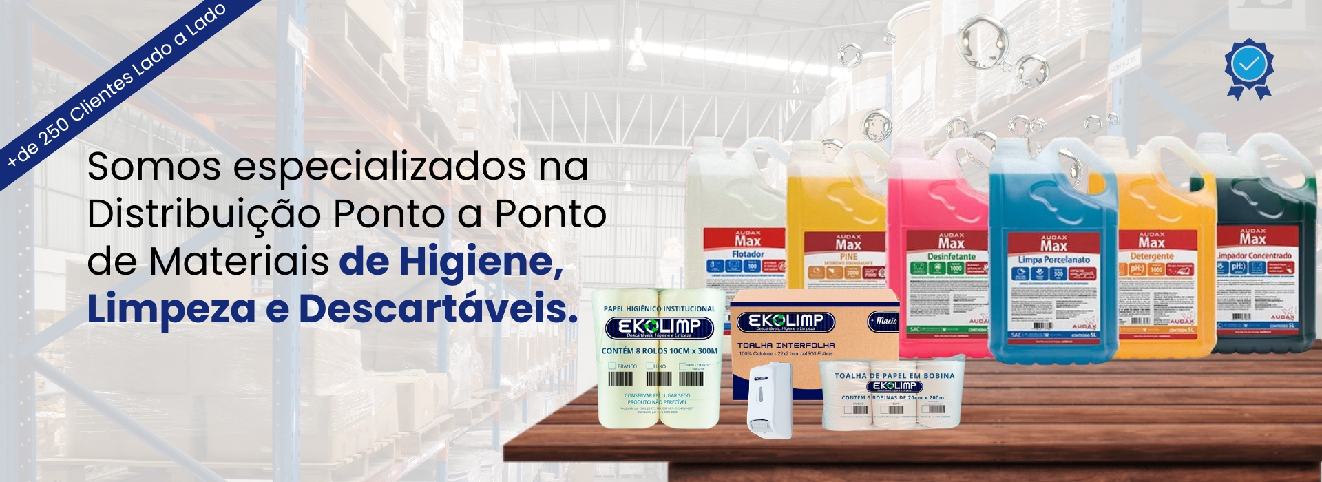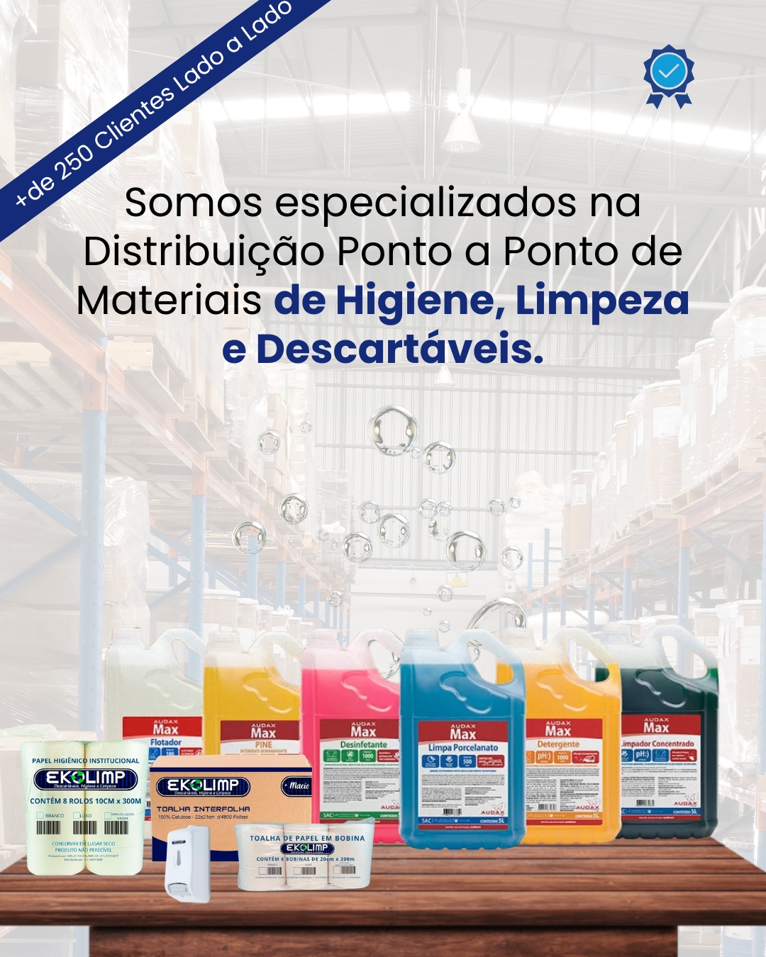 Com mais de 12 anos de experiência, a Ekolimp Descartáveis Ltda é referência na distribuição de materiais de limpeza, higiene e descartáveis. Atendemos com excelência empresas privadas de diversos segmentos e órgãos públicos, focados em simplificar e otimizar o fornecimento de suprimentos essenciais..